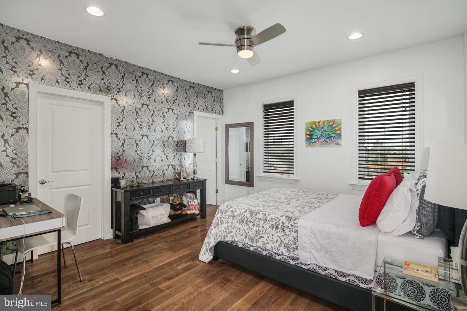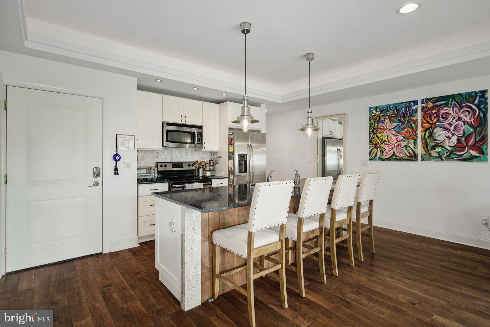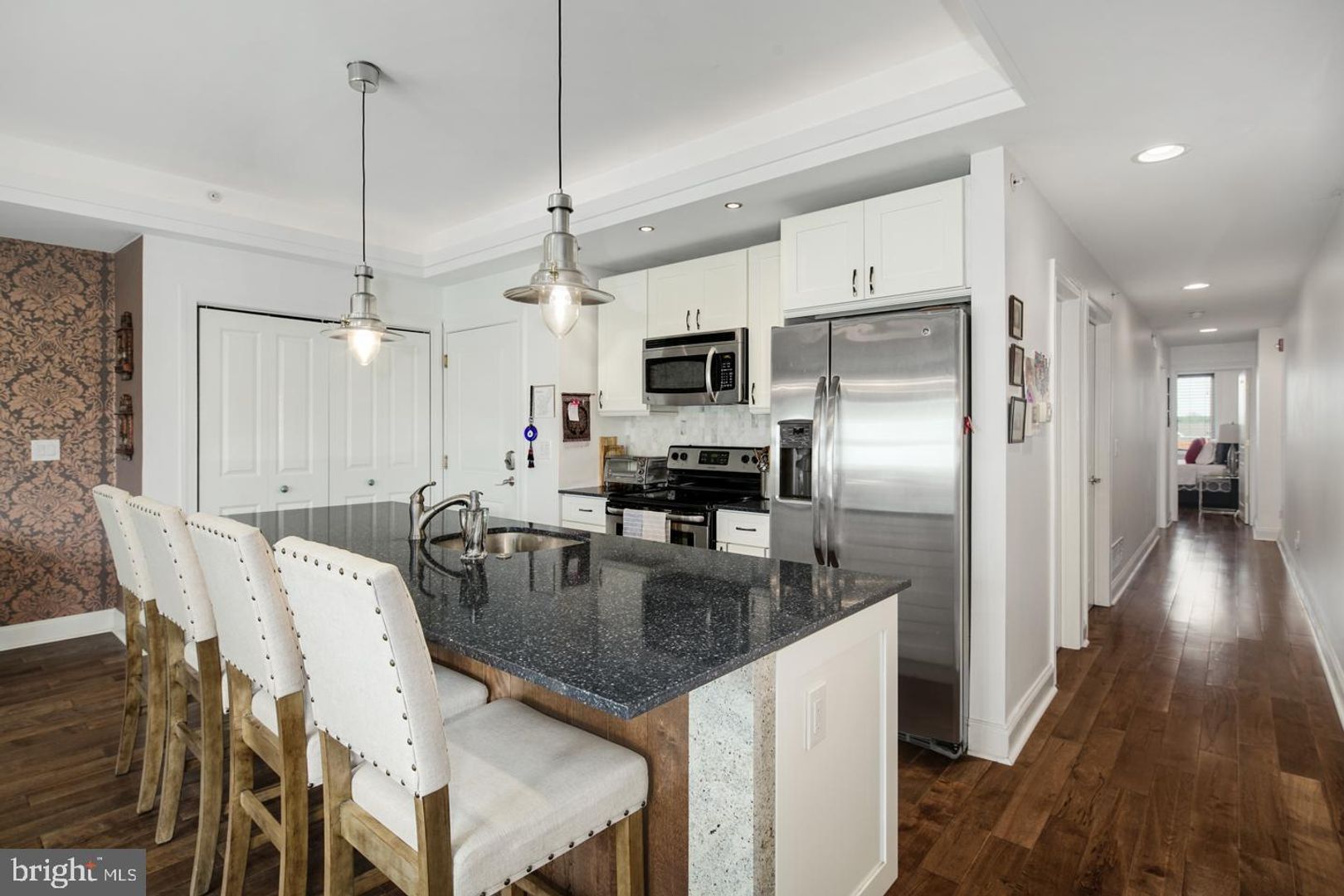 Beautifully maintained condo in Poplar. This home features assigned indoor parking and a private balcony that extends from the spacious living and dining area. Upgrades include a new Wi-Fi–enabled washer and dryer and an energy-efficient HVAC system installed in 2021. Throughout the home, you’ll find custom closets and hardwood floors. The custom wallpaper was designed specifically for the current owner but can be easily removed if preferred. The unit offers two generously sized bedroom suites, each with a well-appointed full bath, plus an additional half bath in the hallway. The updated kitchen provides ample cabinet space and a large countertop. Conveniently located near Broad Street and Fairmount, the property provides easy access to neighborhood amenities, Center City, and an Aldi within walking distance.