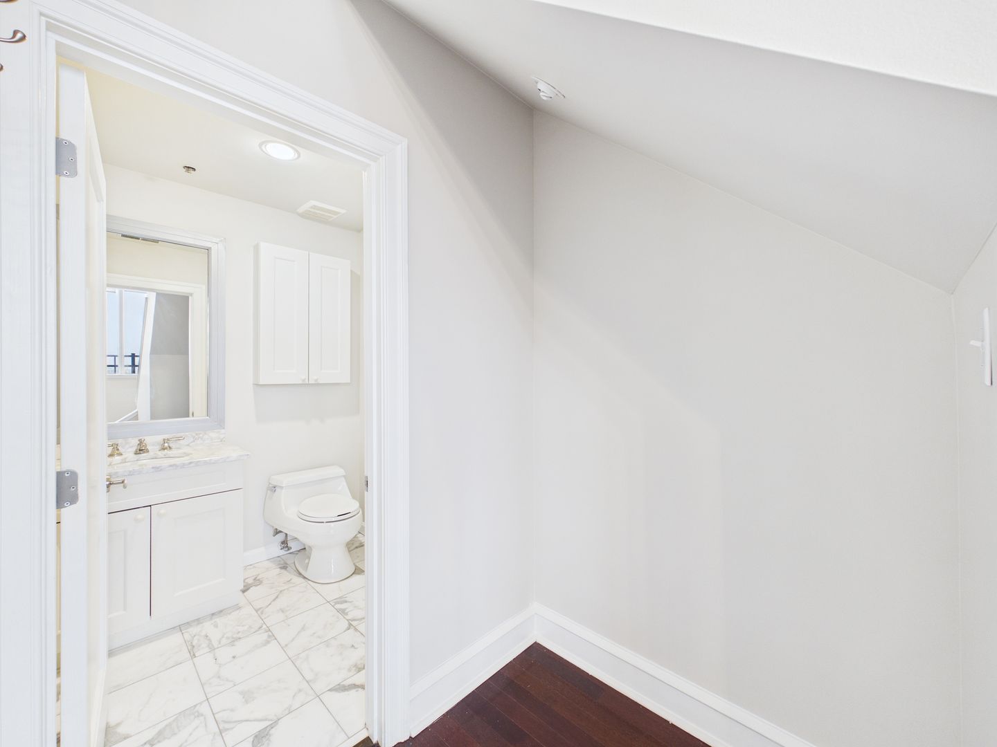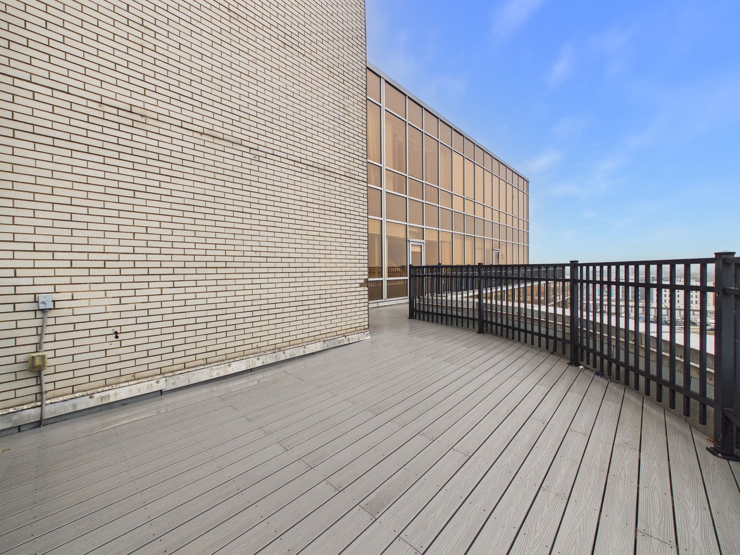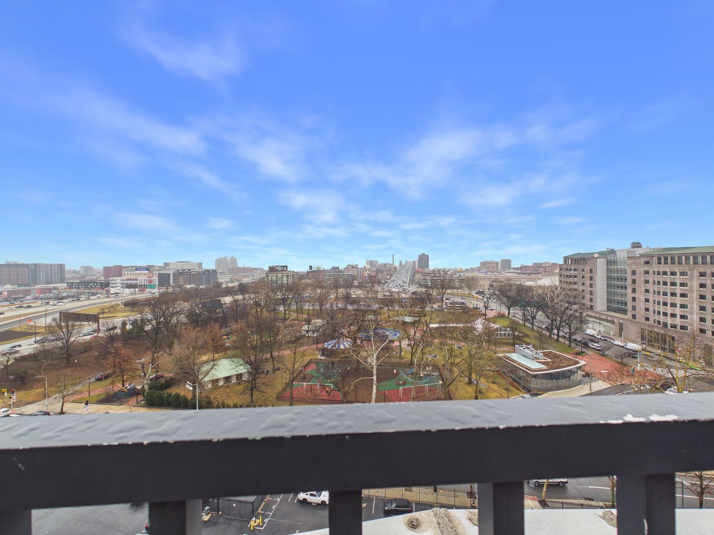 Old City Penthouse 2 story 2 bed 1.5 bath that checks off all the boxes in an elevator high rise building with gated assigned parking space. The first-floor open floor plan offers beautiful hardwood floors, granite kitchen, stainless steel appliances, coat closet, office nook, powder room, and wall of windows and glass door that leads out to the largest deck at the Metro Club with 600 sq ft dimensions. This deck has direct views of the Ben Franklin Bridge and Franklin Square and is ready for your outdoor furniture and decorating. The views of this enormous deck are incredible and especially breathtaking at night and during firework displays. Upstairs are 2 large bedrooms with remote control window treatments and both bedrooms have full views of the Ben Franklin Bridge. One bedroom has a walk-in closet and the other bedroom has a very large closet and direct access to the marble bath. The upstairs hallway is wide enough for furniture and offers another walk-in closet and a laundry area with a front-loading full-size washer and dryer and even more closet space.