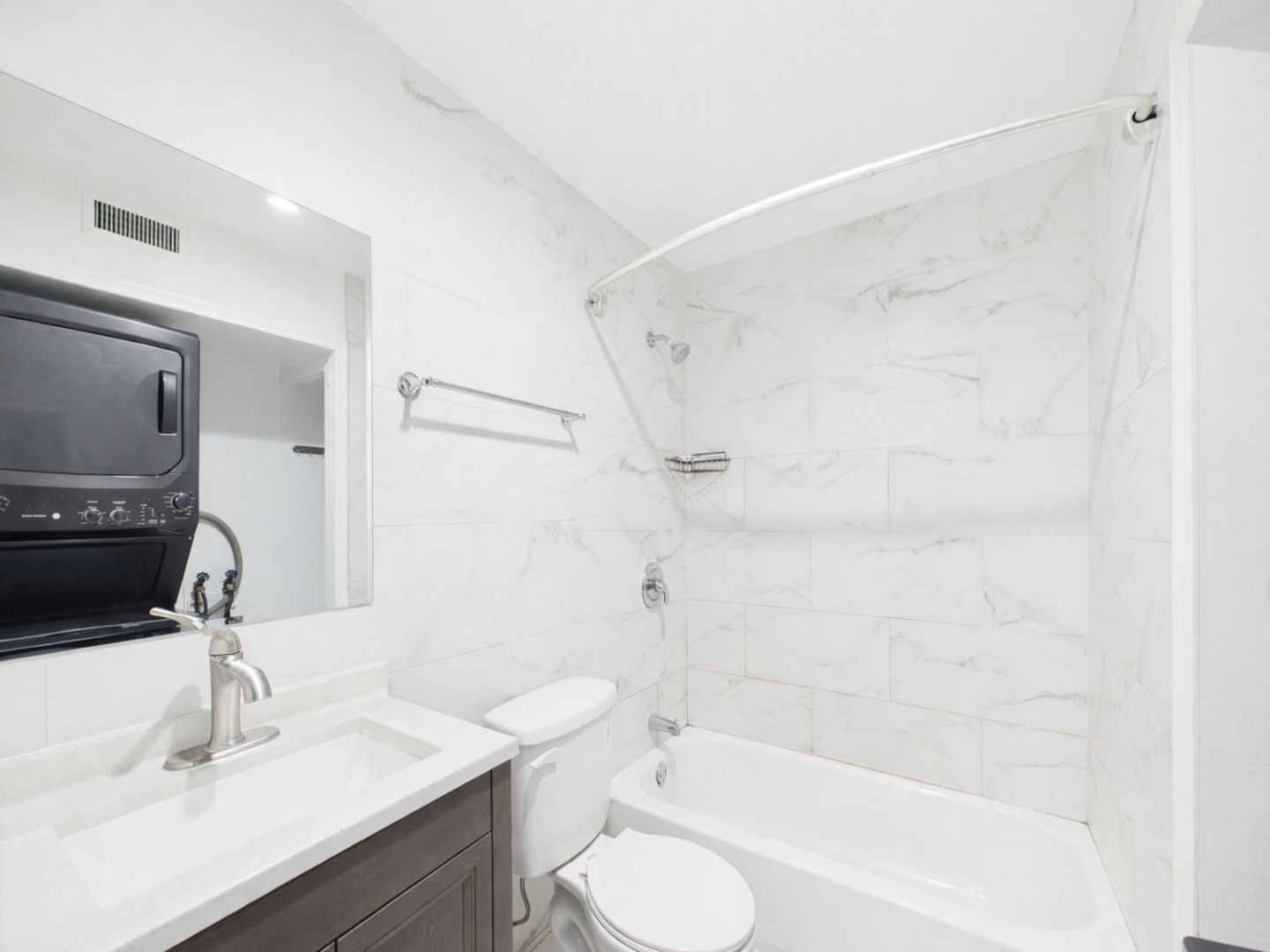 This beautifully updated split-level apartment offers a perfect blend of comfort, style, and convenience. Thoughtfully renovated throughout, the home features rich hardwood floors, a modernized kitchen with updated finishes and appliances, and a sleek, refreshed bathroom designed with both elegance and functionality in mind. Central air conditioning ensures year-round comfort, while the in-unit washer and dryer provide the ease of everyday living.