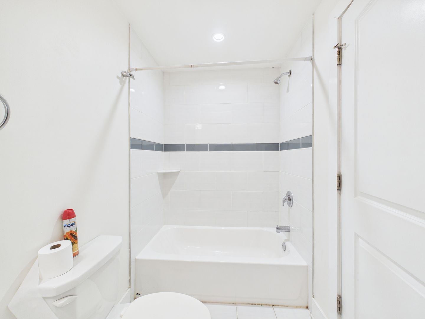 Downstairs you'll find both bedrooms, washer and dryer, and the full bathroom.