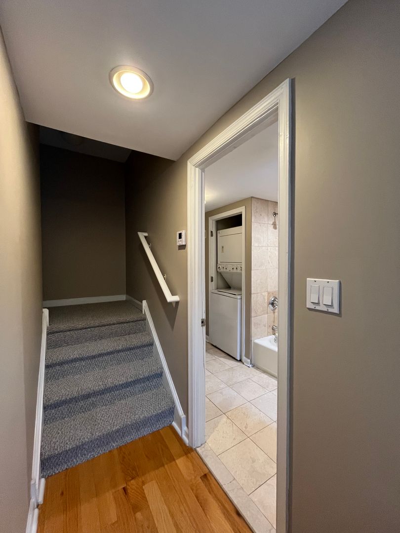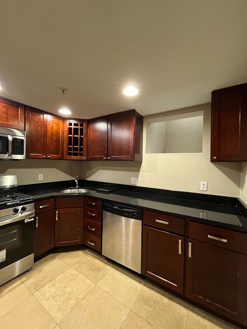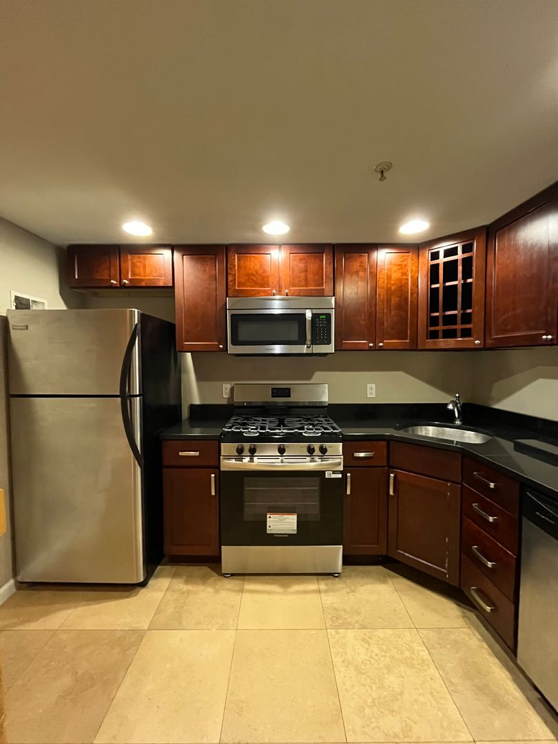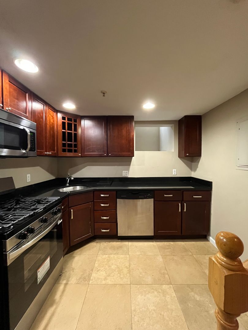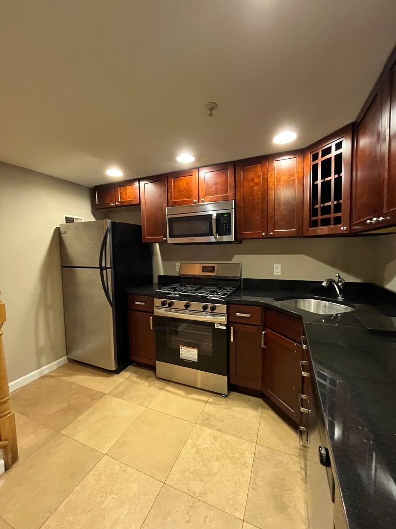 Walk Into A Large Gated Cobblestone Courtyard To A Wonderful Multi-Level Townhouse. You Will Find Hardwood Floors on The First Floor. The 2nd Level Is A Large Contemporary Bathroom w/ A Washer and Dryer.The Top Level Is A Lovely Bedroom w/ Skylight with Berber Carpeting. Lower level kitchen has a tiled floor, stainless steel appliances, and tons of cabinets & granite counter tops. Central air/heat, great natural light.