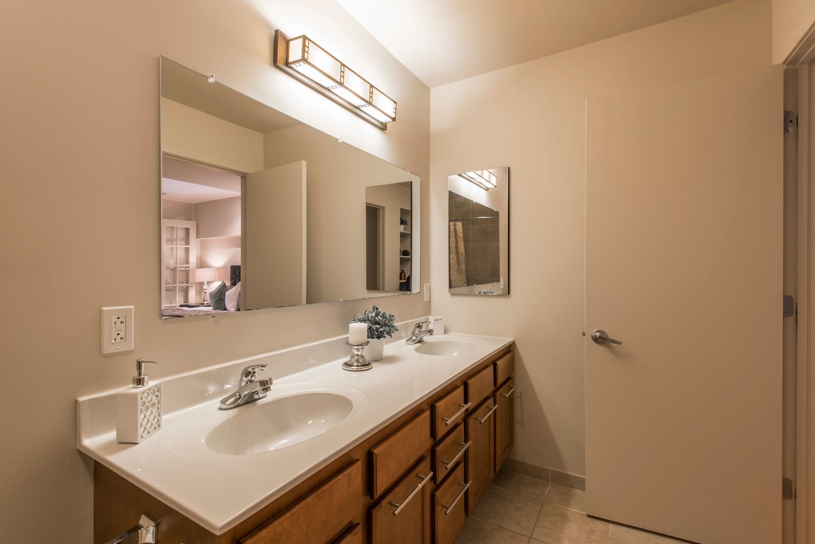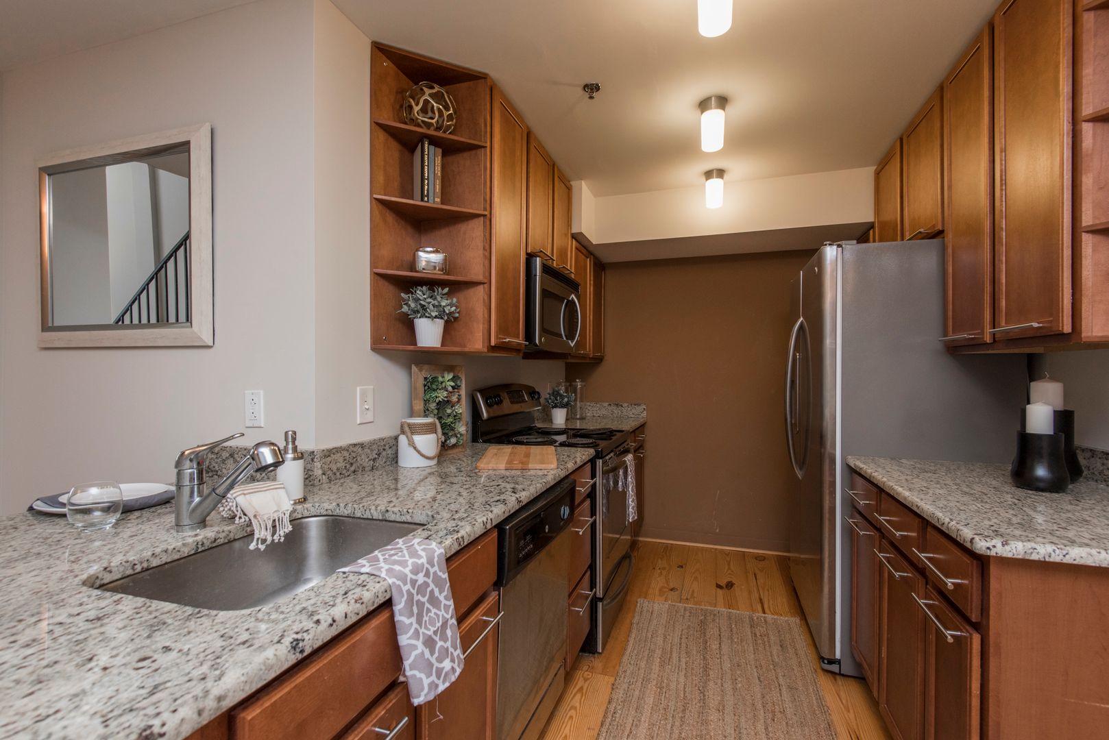 Welcome to this stunning two bedroom + den bi-level apartment in Washington Square West! Enter into a lovely foyer with a hall tree and full bathroom. This open concept kitchen / dining space is complete with granite countertops and stainless steel appliances. Please enjoy the spacious sun filled living room, bonus room, and in-unit laundry all on the first level. Upstairs you'll find two bedrooms with beautiful french doors, ample closet space, and a jack + jill bathroom.