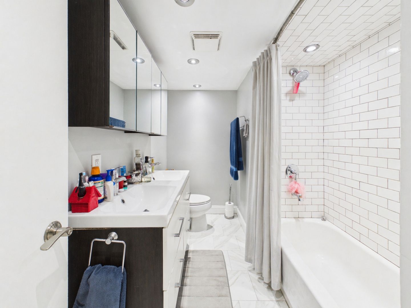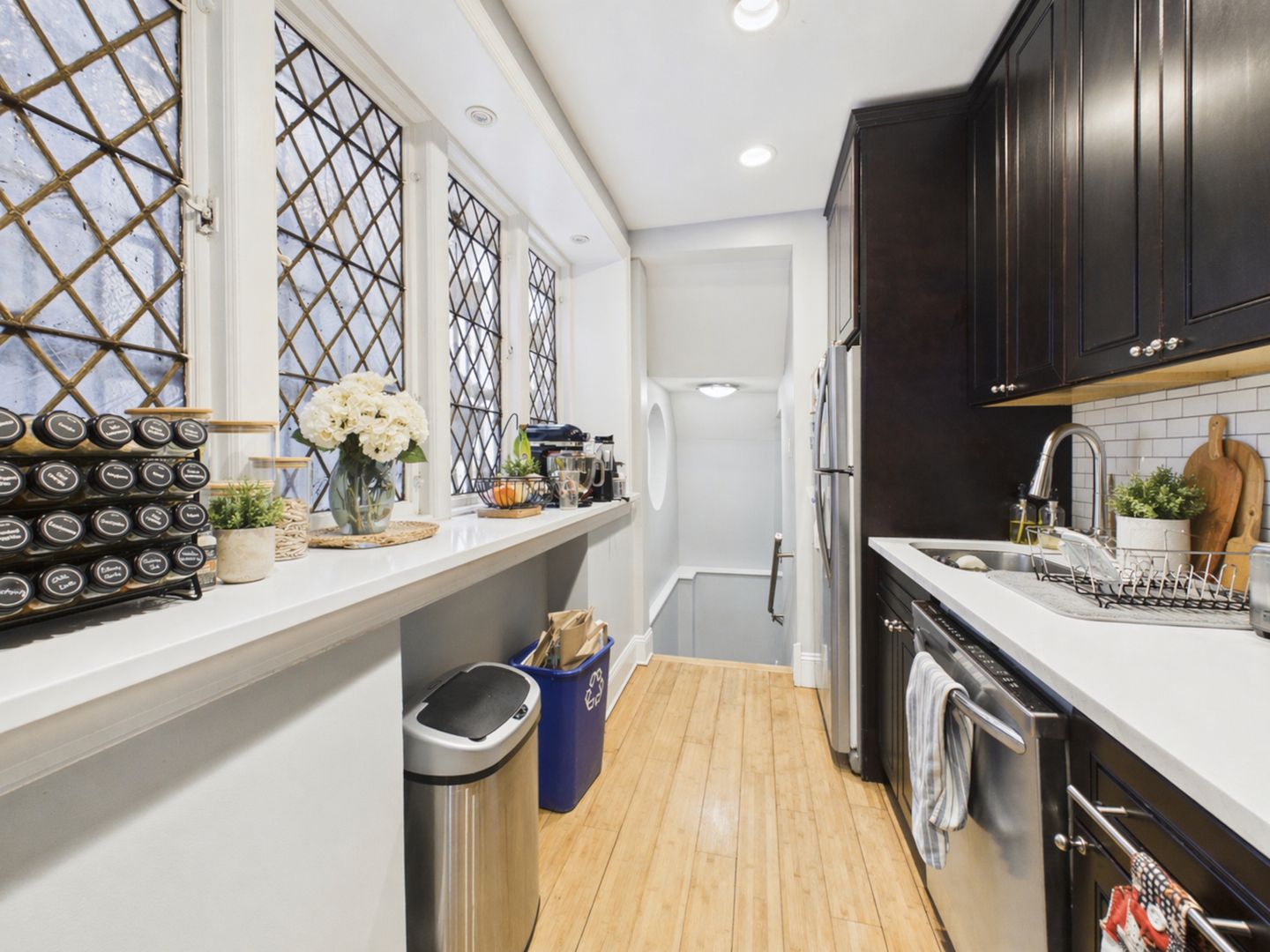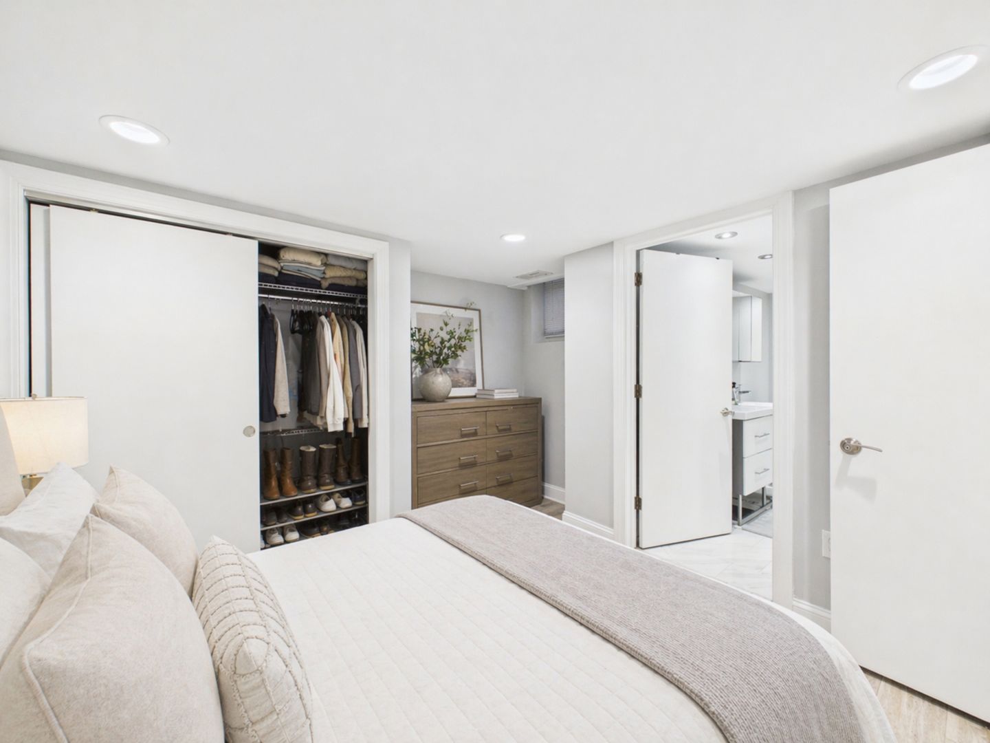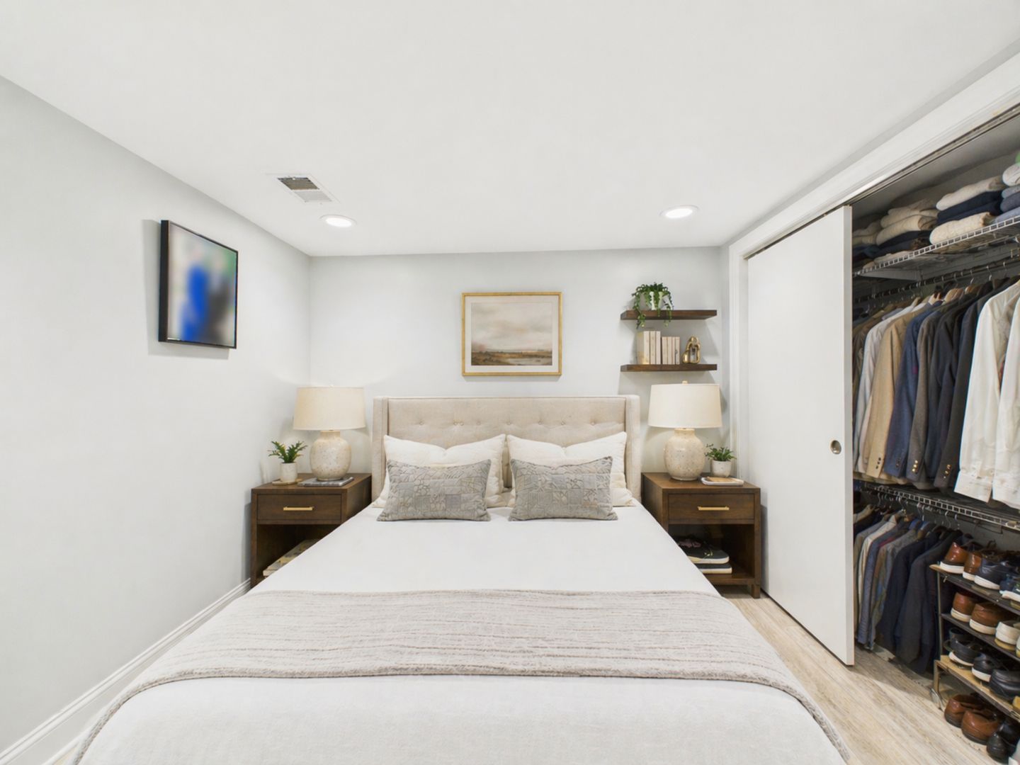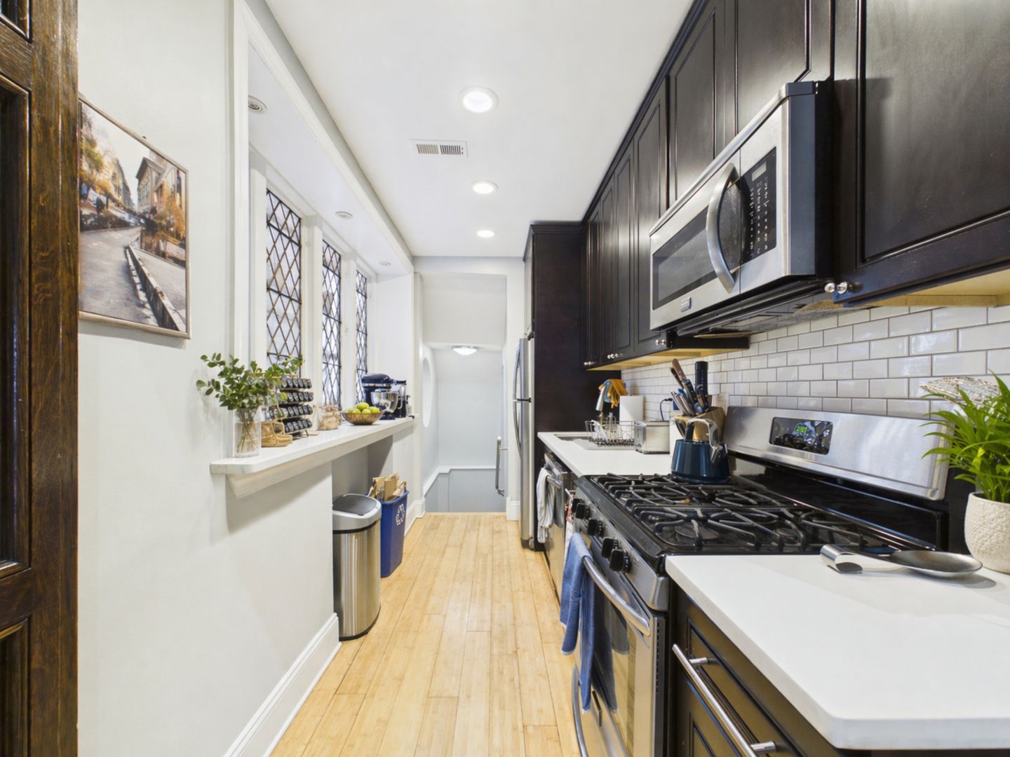 The updated kitchen includes stainless steel appliances, sleek cabinetry, and an efficient layout. The lower level features both bedrooms and two full bathrooms, along with excellent closet space, including a well-organized walk-in closet.