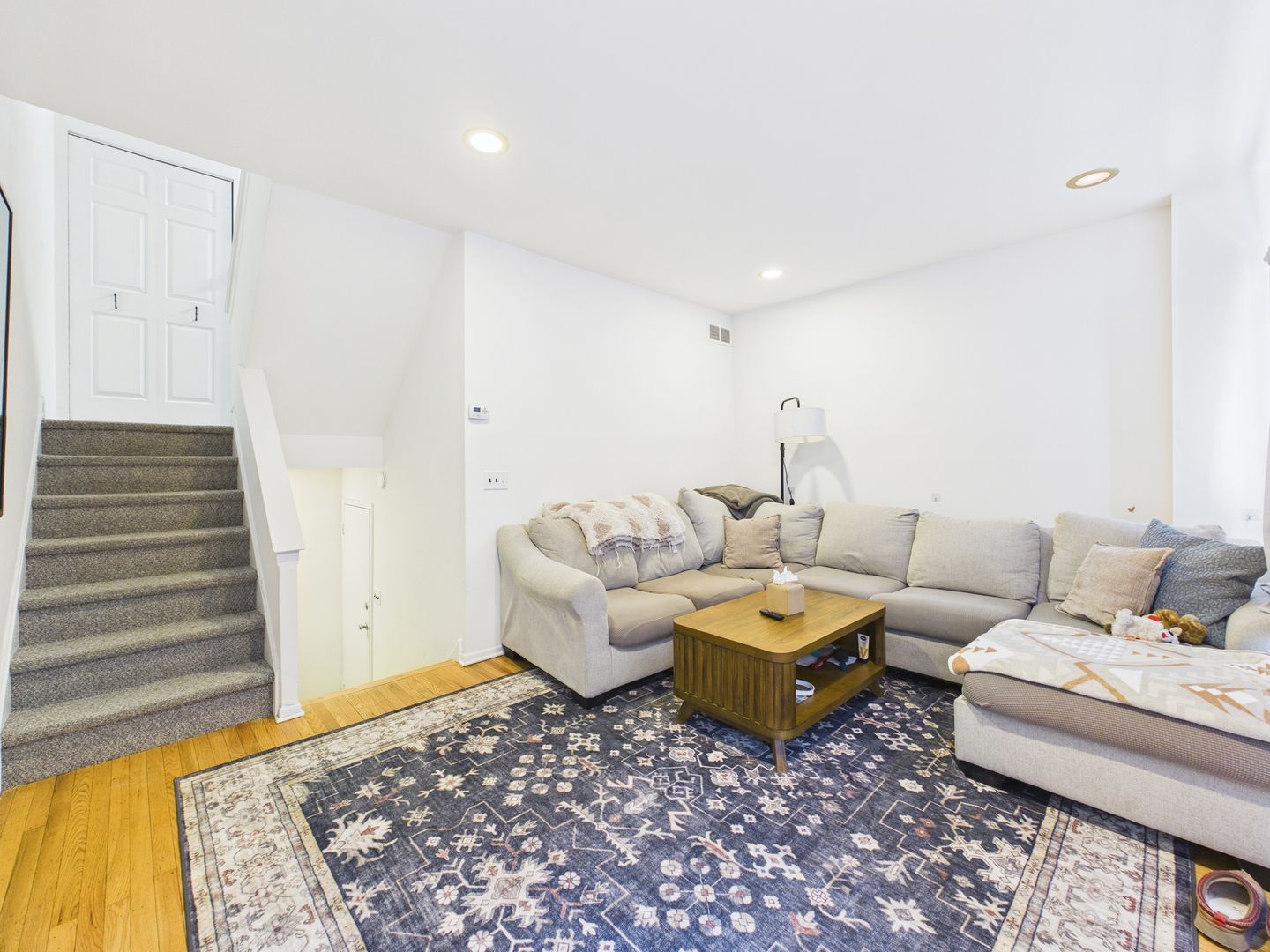 The first floor has a nice living room, a few steps down leads to a powder room, the laundry area, garage entrance and a large semi finished basement, ideal for extra storage etc.