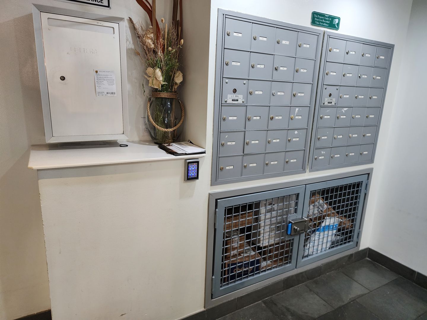 Building offers a secure package/mailbox area in the lobby where deliveries are made from all carriers as well as a front desk person who is there overnight. Deliveries being secured is one less thing you'll need to be worried about.