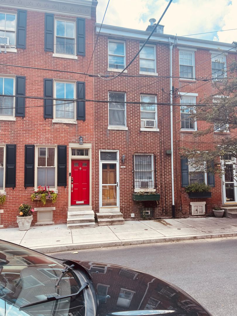 An opportunity to rent this truly delightful 3 story, 2 large bedroom townhouse on a lovely residential Queen Village block. This house retains its colonial charm, with the original staircase, whilst providing all modern amenities. Enter into a large living area which leads through to a nice kitchen. There is a small walled yard outside the back door. The curved staircase leads to the second floor where the first bedroom and full bathroom are located. There's an area outside the bathroom which can serve as a dressing area, an extra closet or a small den area. A sliding patio door leads from here to a lovely private deck. The 3rd floor has a very large bedroom with tons of closet space and high ceilings. Laundry, washer and dryer, are in the basement with extra storage space. The house has the lovely original hardwood floors throughout. Window a/c. This house has great appeal on this quiet block with easy access to all the neighborhood amenities. Close to the I95 and easy access to local transportation, shopping , local parks, coffee shops and restaurants.