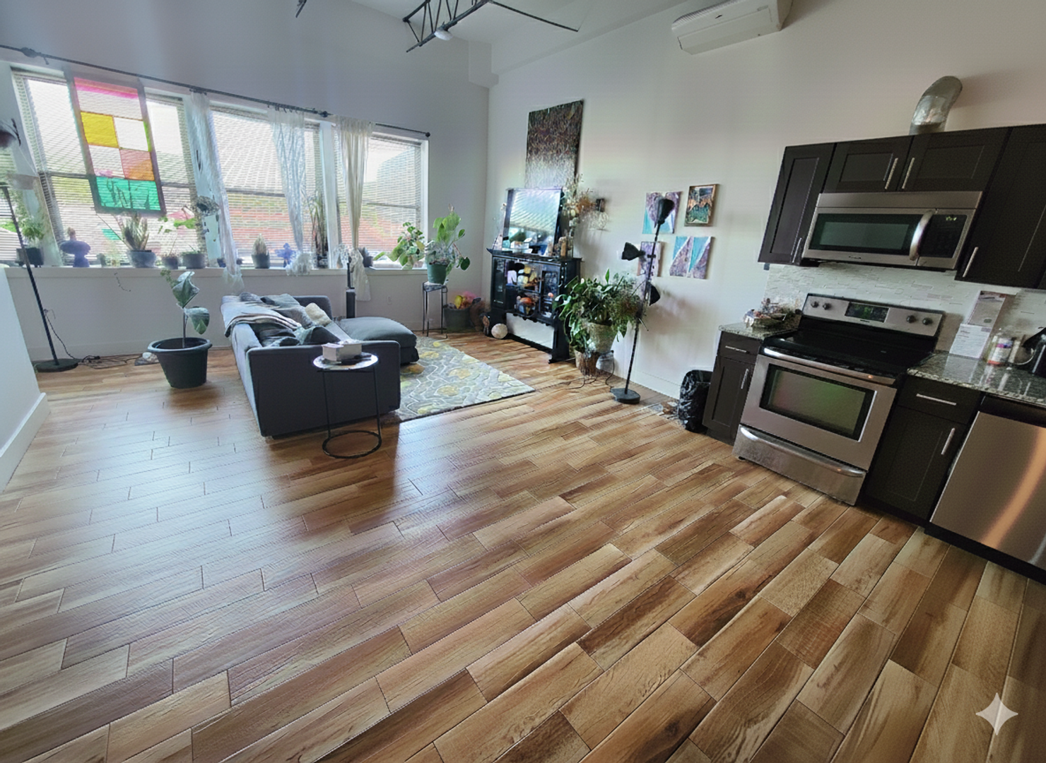 Largest apartment in the building with a ton of natural light and a massive living room/dining room.