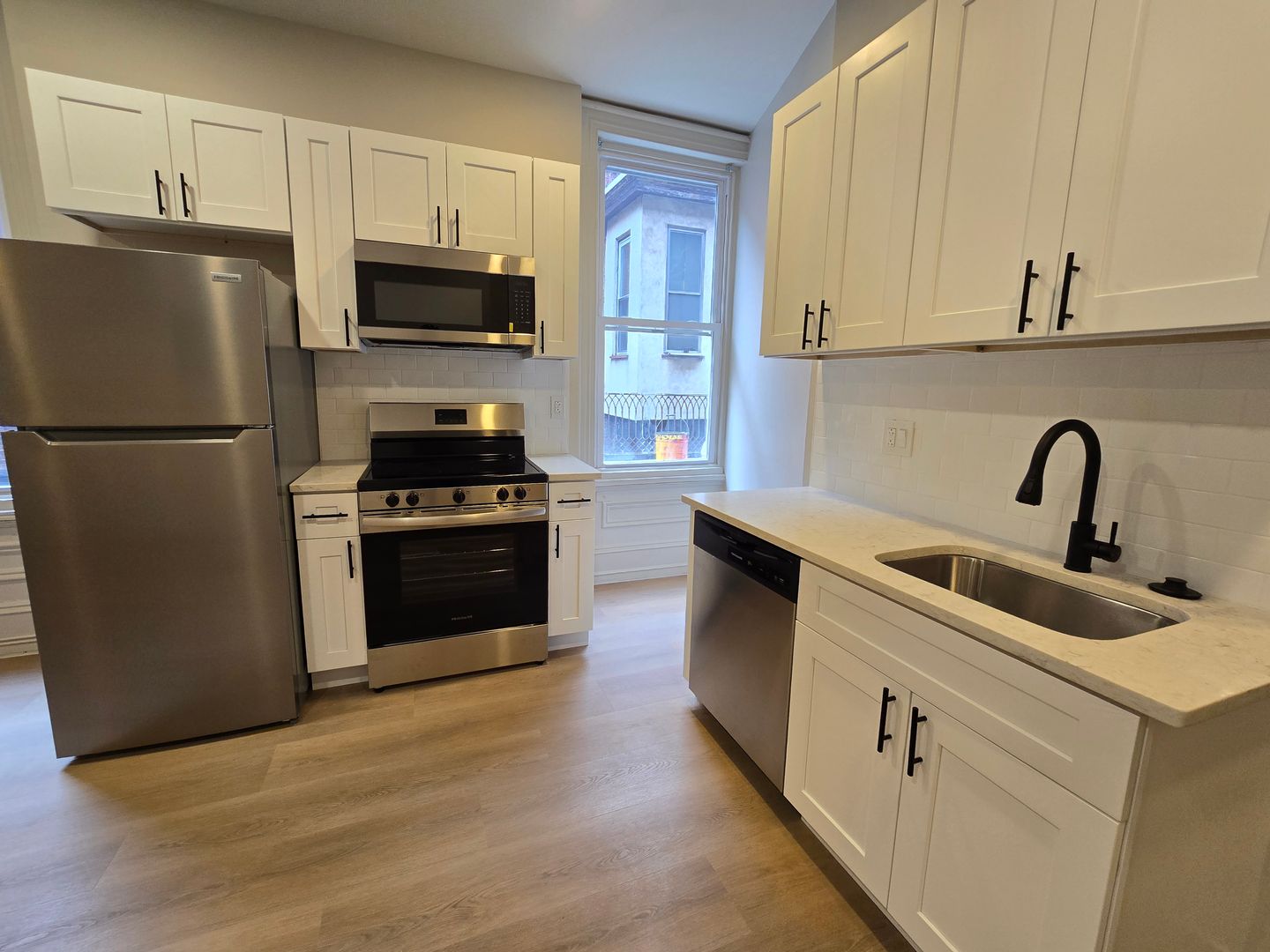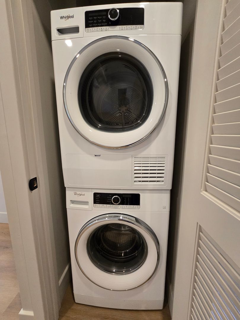 Each residence features hardwood floors, in-unit washer and dryer, central air, stainless steel appliances, and modern finishes throughout. With large windows and abundant natural light, every apartment offers a bright and open feel designed for contemporary city living.