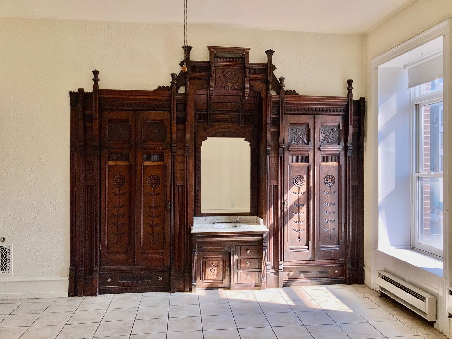 1122 South Broad Street is just just off of Washington Avenue, one block from SEPTA's Ellsworth-Federal subway station and steps from Batter and Crumbs Bakery/Cafe, Reanimator Coffee, Burrata BYOB, Green Eggs Cafe, Sprouts Market shopping complex, City Fitness and Columbus Square Park. This apartment features an ornate refurbished antique mirrored fireplace mantle and closets, two adjoining rooms, a den/storage/work room, tile floors, ceiling fans, built-in AC window unit, washer/dryer, dishwasher, garbage disposal and built-in microwave. Tenants pay for gas electricity and water. No pets, please.